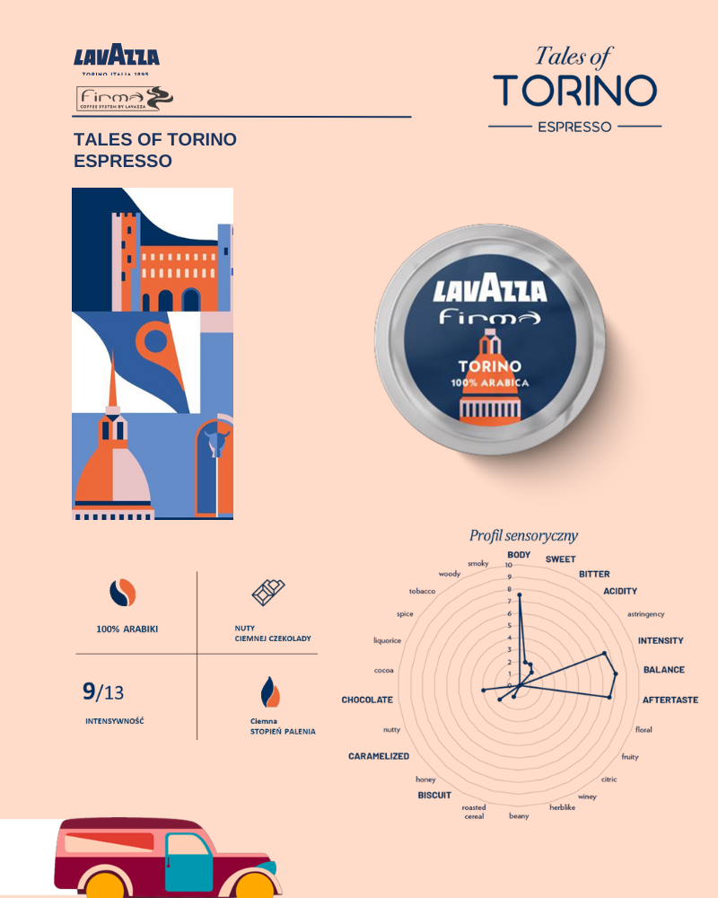Opowieści z Turynu odzwierciedlają wyrafinowaną duszę pierwszej stolicy Włoch, dzięki nutom ciemnej czekolady i gładkiemu, długo utrzymującemu się posmakowi. Odkryj elegancki sabaudzki urok pierwszej stolicy Włoch dzięki tej mieszance bogatej kawy o pełnym body. Ciemne palenie podkreśla odważny charakter tej kawy, zapewniając długotrwały i zrównoważony smak z nutami ciemnej czekolady i łagodnym, słodkim posmakiem.